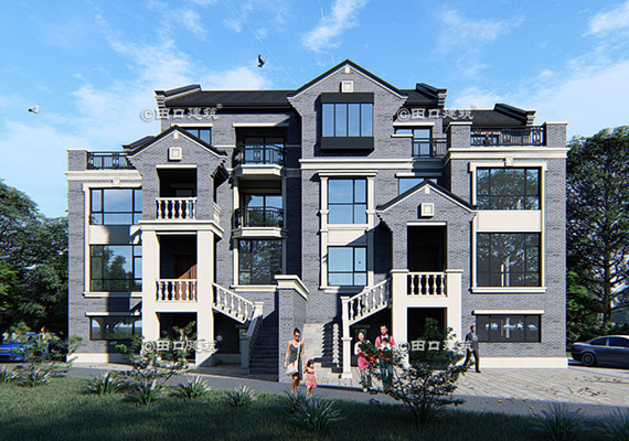 占地面積 142.4㎡ 土建造價 60.0萬 帶底商三層美式別墅